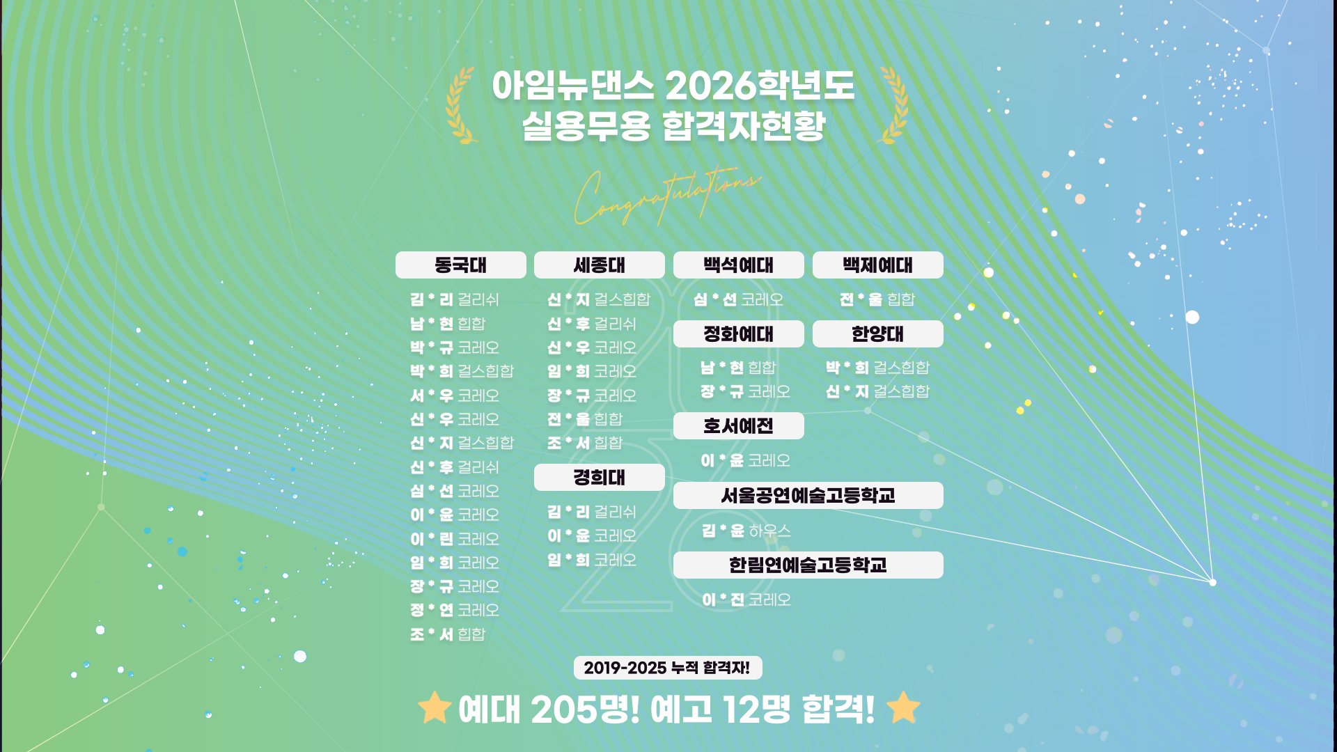 실용무용계열 학교로의 진학을 준비하는 학생들을 위한 입시전문 과정입니다. 학생 개인별 개성을 고려한 1:1 작품지도와 실기/면접 역량향상을 위한 담임제케어시스템을 통해 실기전형 합격률을 높이고 전공자로서의 기반을 다집니다.